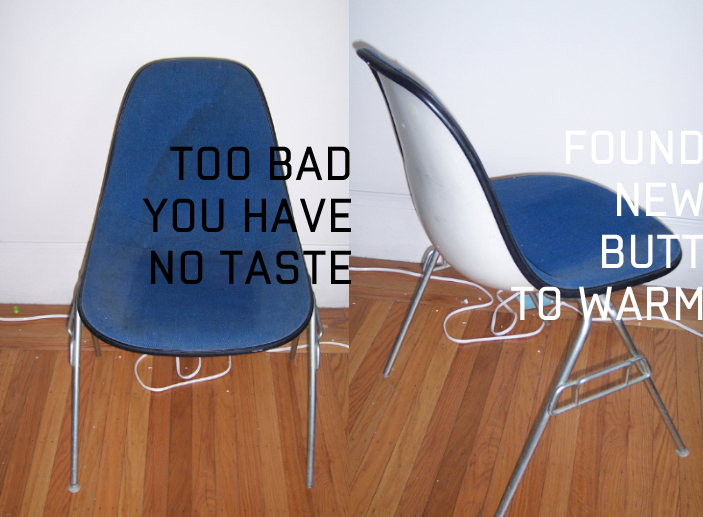 ![]() only missing the leg rest at the bottom, but still very sleek and contours to your butt very comfy when you're drunk. |