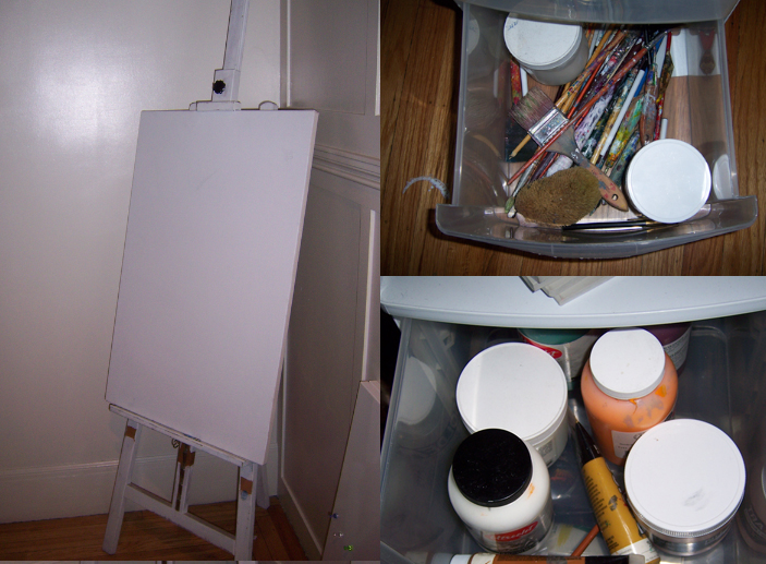 ![]() Includes artist easle, sand paper varies sized stretched canvas already primed acrylic paints, brushes and container. |